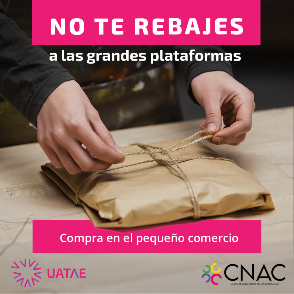 Por todo ello, lanzan el slogan “No te REBAJES a las grandes plataformas”, con el que pretenden concienciar de que “la compra exclusiva en estas empresas multinacionales no deja beneficio en nuestra sociedad, ya que se trata de corporaciones que no tributan lo debido en España, que no crean las ventajas que se derivan del comercio local”. En este sentido, piden que “en caso de adelantarse las compras navideñas a finales de noviembre, se tenga en cuenta la necesidad de favorecer al pequeño comercio, que está todos los días al pie del cañón, con multitud de problemas para mantenerse a flote compitiendo con gigantes que tienen su sede en Francia, en Estados Unidos o en paraísos fiscales”.